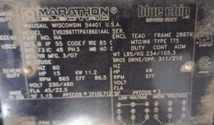 15HP, 865 RPM Motor